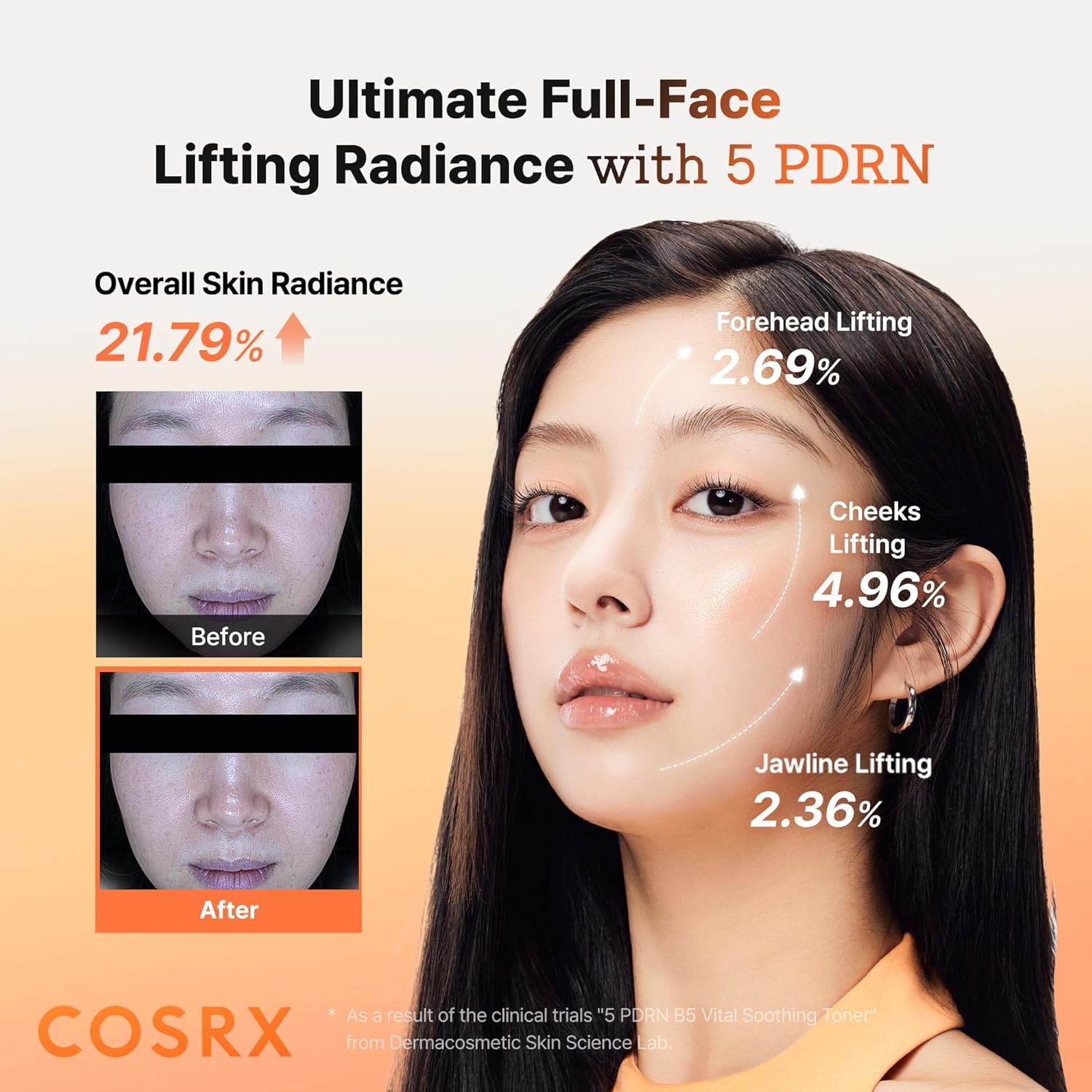Οι 5 τύποι PDRN ενισχύουν την επανόρθωση της επιδερμίδας, μειώνουν τα σημάδια γήρανσης και χαρίζουν φωτεινότητα. Η Βιταμίνη B5 (Πανθενόλη) προσφέρει ενεργή θρέψη, καταπραΰνει την ευαίσθητη επιδερμίδα και ενισχύει τον δερματικό φραγμό. Ο συνδυασμός Acetyl Hexapeptide-8, Αδενοσίνης και κολλαγόνου χαμηλού μοριακού βάρους (200 Da) συμβάλλει στη βελτίωση της χαλάρωσης, στη μείωση των ρυτίδων, στην ενίσχυση της σφριγηλότητας και στην αποκατάσταση της ζωτικότητας. Οι 8 τύποι υαλουρονικού οξέοςχαμηλού, μεσαίου και υψηλού μοριακού βάρους προσφέρουν βαθιά, πολυεπίπεδη ενυδάτωση και διατηρούν την επιδερμίδα γεμάτη και ελαστική.
